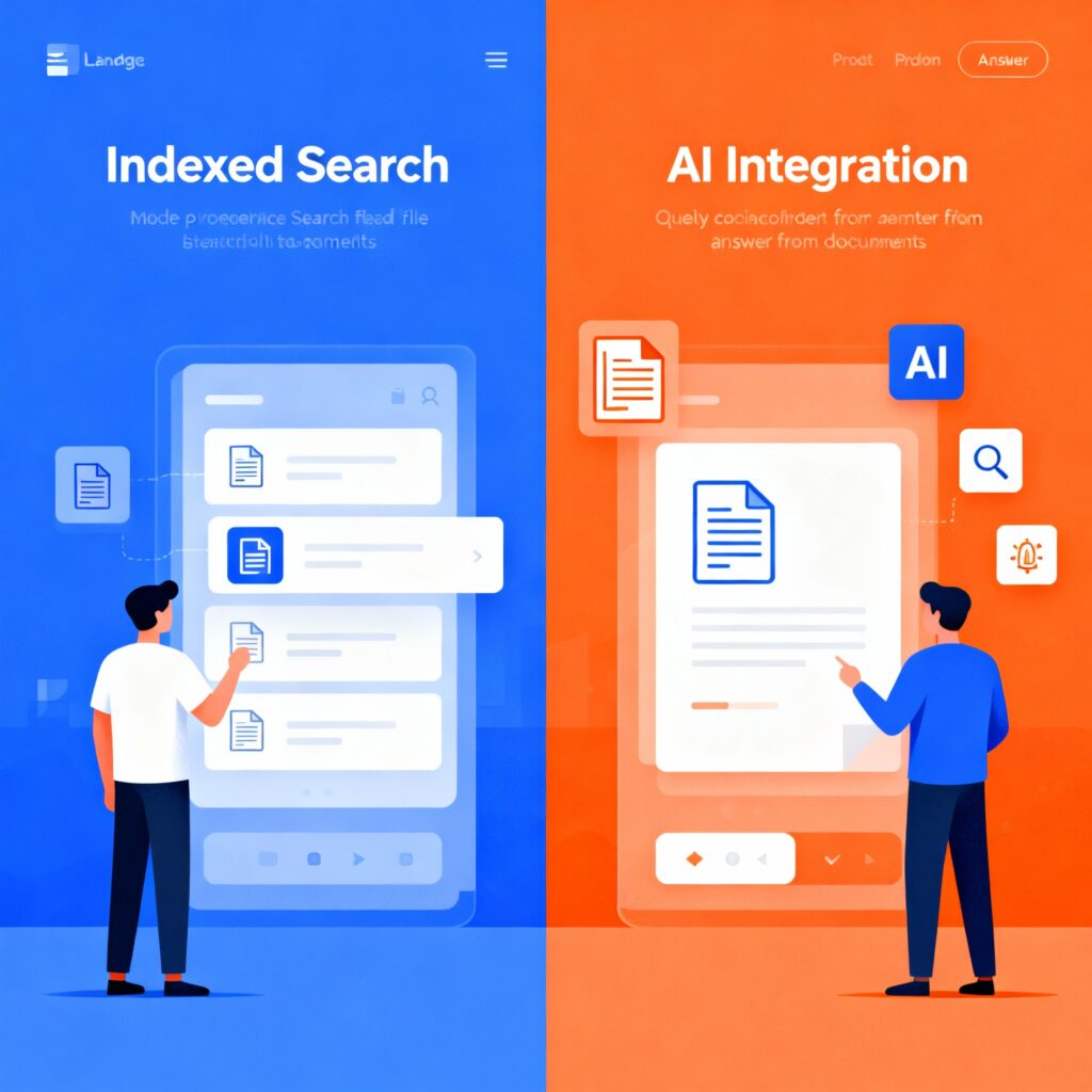 | Для кого: Командам, которым нужен быстрый и точный доступ к исходным документам без затрат на AI. Идеально для работы в закрытом контуре. | Для кого: Компаниям, которые хотят получать не просто документы, а готовые ответы, аналитику и саммари на основе своих данных. |